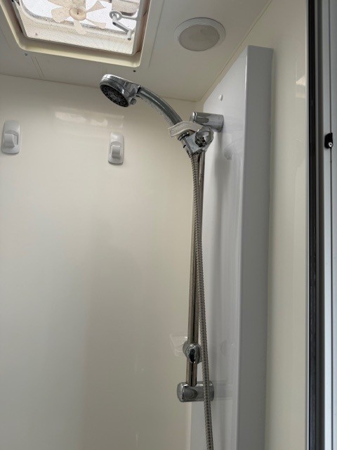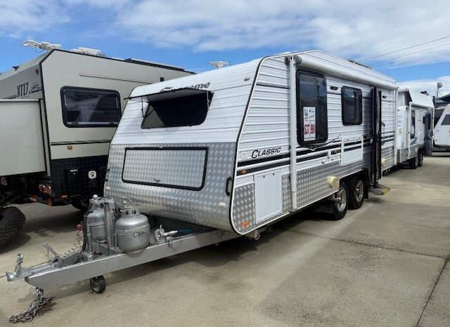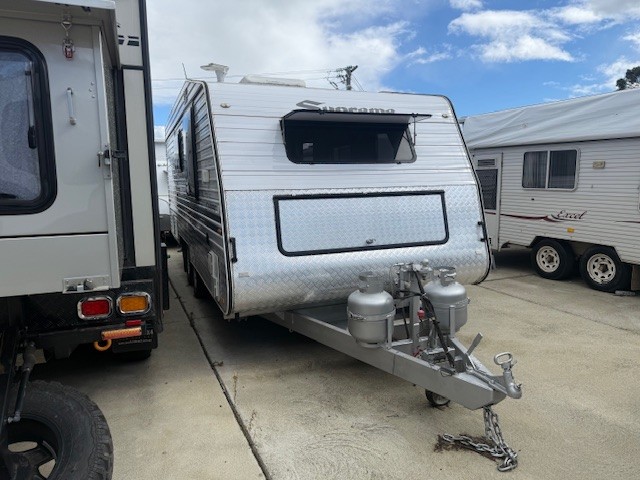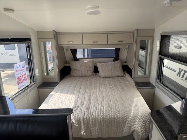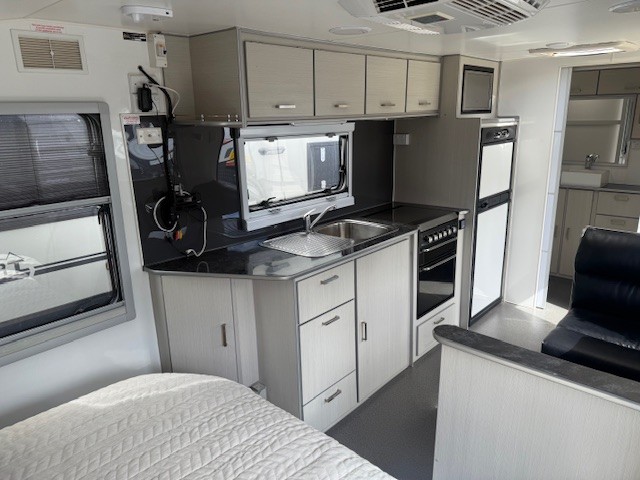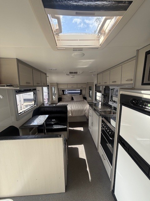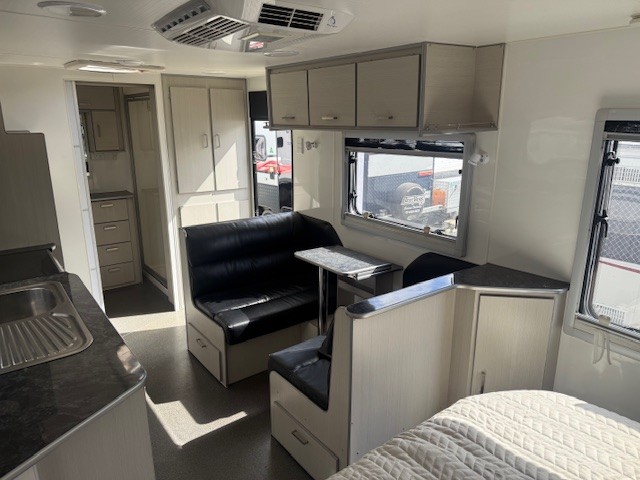 At 19’6″ it is perfect in size and features full ensuite, battery & solar, Ibis a/c, cafe seating, island bed and much more.