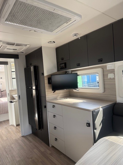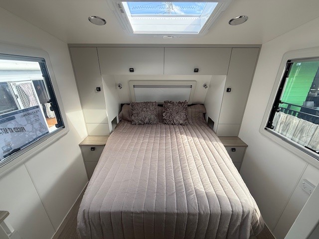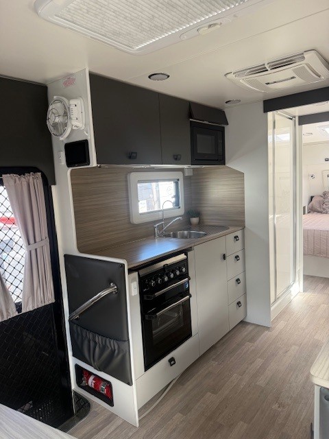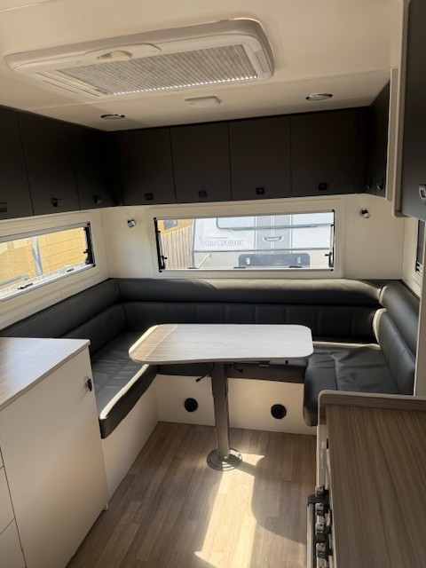 With 2 x batteries, solar, club lounge, grey water tank, A/C, DO-35 coupling, toolbox and 12v fans it has all you need and more.