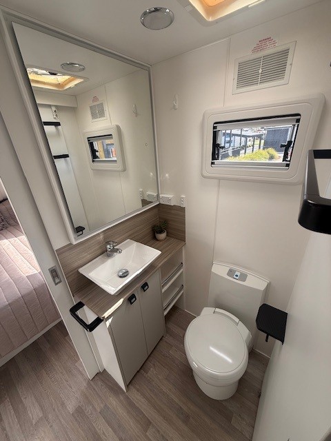 The Franklin CX22 is the perfect van for those long trips or even to live in with its mid ensuite giving separation between the bedroom and living/kitchen area.